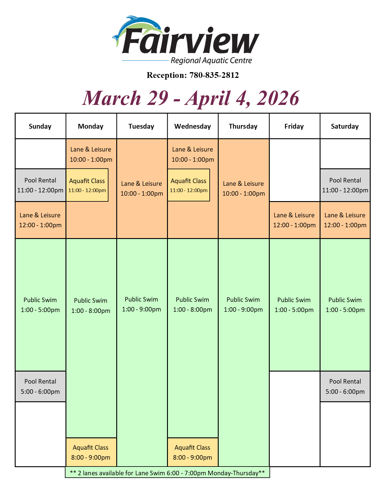 Dive in and unwind at the full-featured Fairview Regional Aquatic Centre. Race along the five-lane lap pool, splash in the wading pool, scream down the tallest waterslide in the Peace Country, and relax in the wheelchair-accessible hot tub. Drop in during designated swim hours, or join one of our aquatic programs, available for any age or swimming level. You’ll be having so much fun, you’ll forget you’re exercising! Keep reading for more information on schedules, rates, lessons, programs and more!