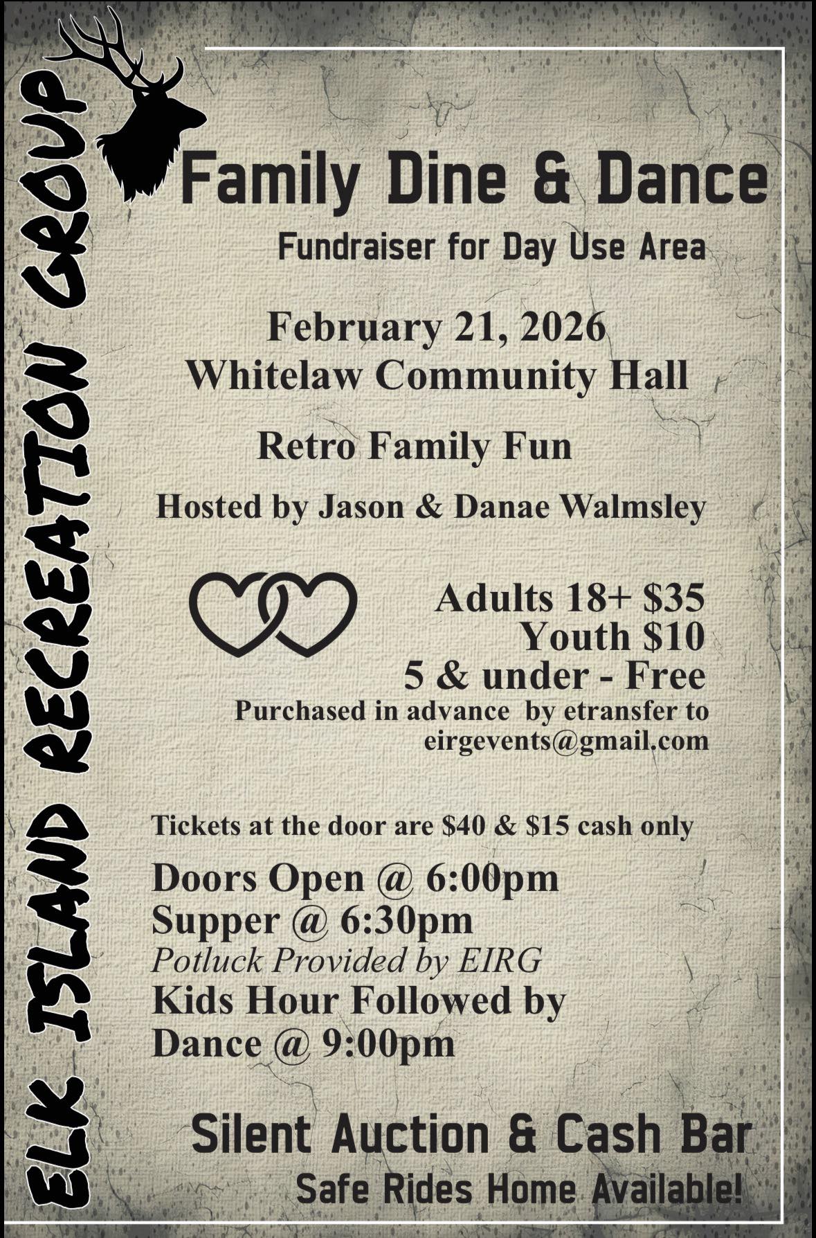 The Elk Island Recreation Group is please to host it's upcoming Family Dine & Dance Fundraiser for Day Use Area.