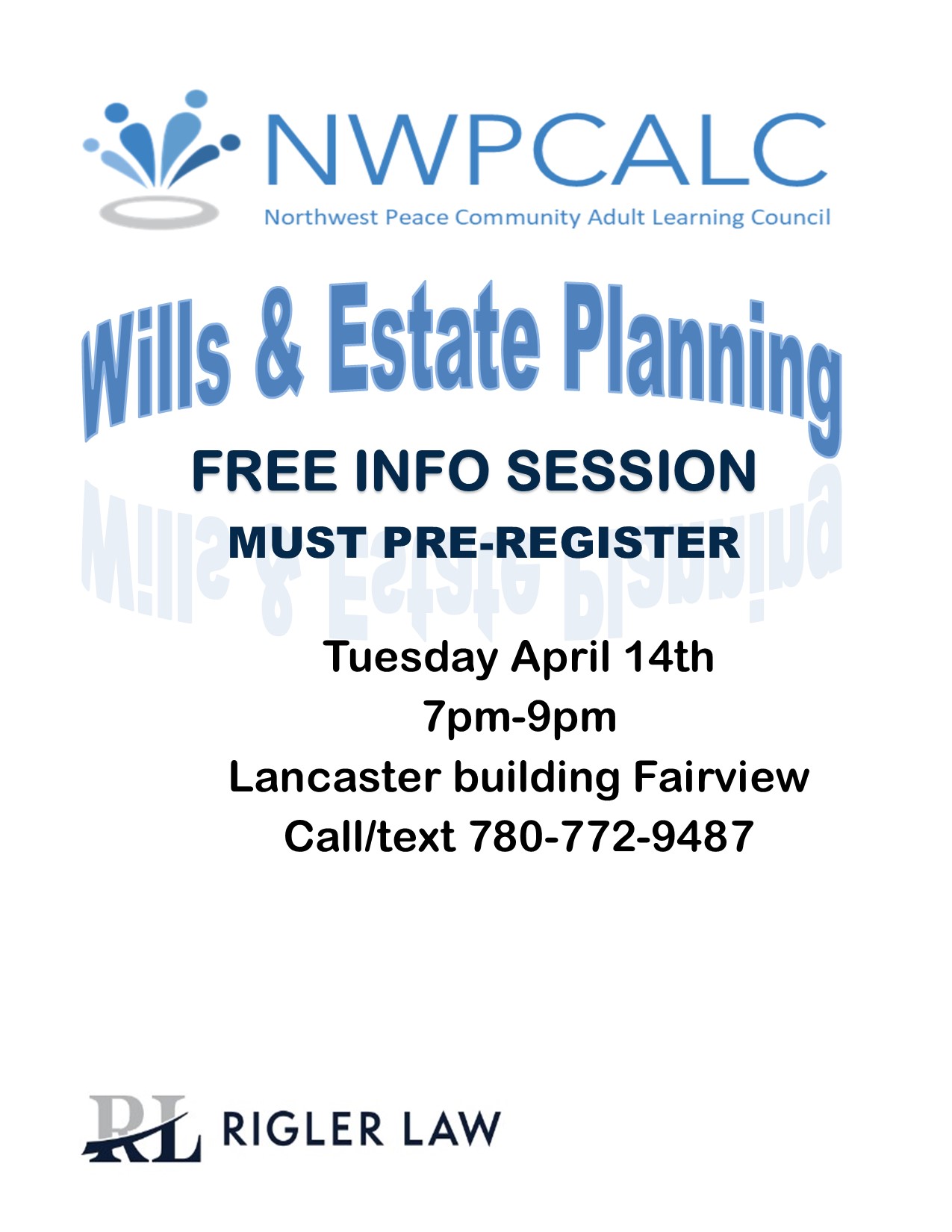 To register call/text 780-772-9487 or email admin@nwpcalc.com