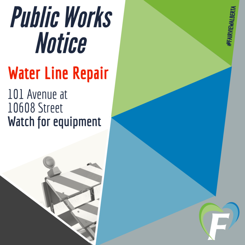 Notice: Water line repairs are underway at 10608 – 101 Avenue. Please watch for equipment operating on the boulevard and service trucks in the area. Thank you for your patience and cooperation.